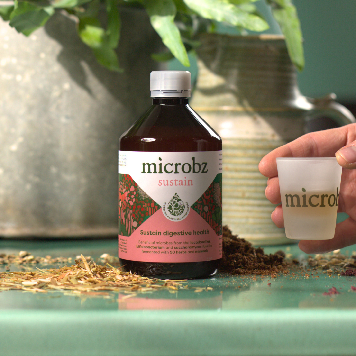 We harness good bacteria (otherwise known as microbes or soil-based organisms) directly from UK soil and ferment them with generous doses of medicinal herbs and minerals.
